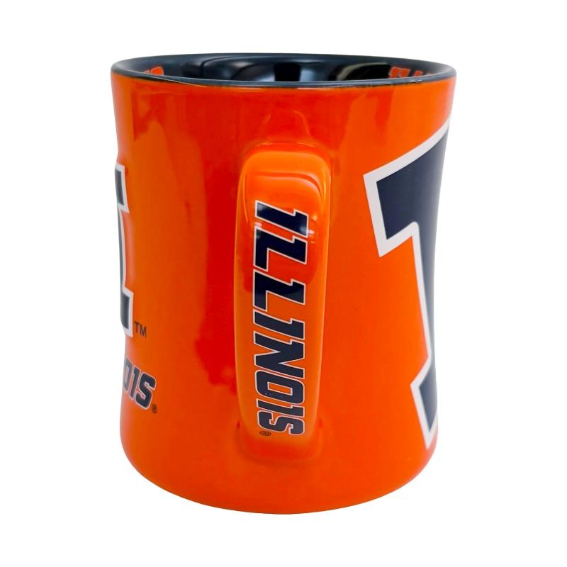 RFSJ Inc.® 16 oz orange Illinois Block I mug. Says "Illinois" on handle.