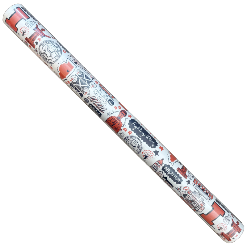 Neil EnterprisesĀ® 28in x 25ft matte-finish gift wrap with elements of British artist Julia Gash's designs for the University of Illinois throughout! Perfect for any occasion, this gift wrap invites you to take a closer look at our campus icons!