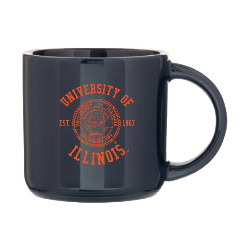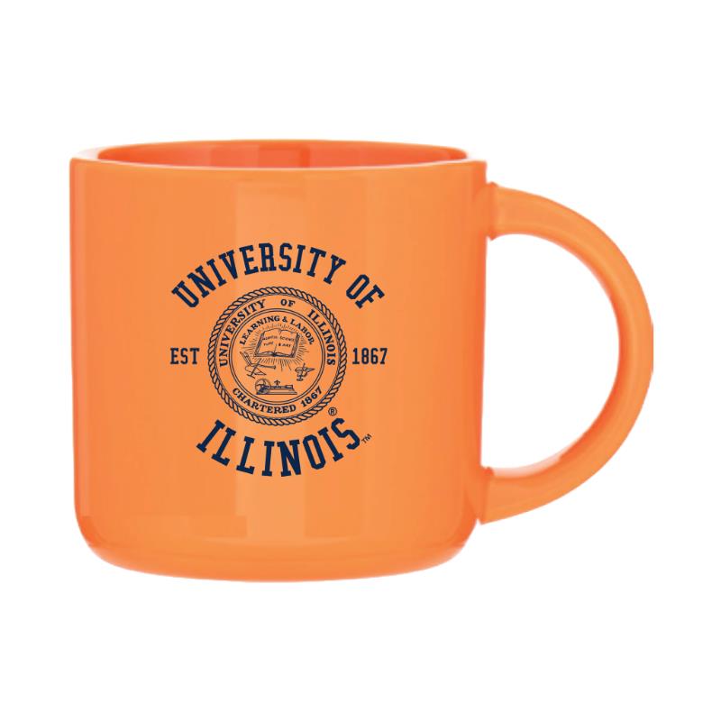 Neil Enterprises® Illinois ceramic mug with UNIVERSITY OF ILLINOIS, EST 1867, and the university seal on both sides. Whether you're an alumni, student, or fan, this mug is a great way to represent your connection to the University of Illinois. Ideal for home, office, or as a thoughtful gift for fellow Illini enthusiasts.