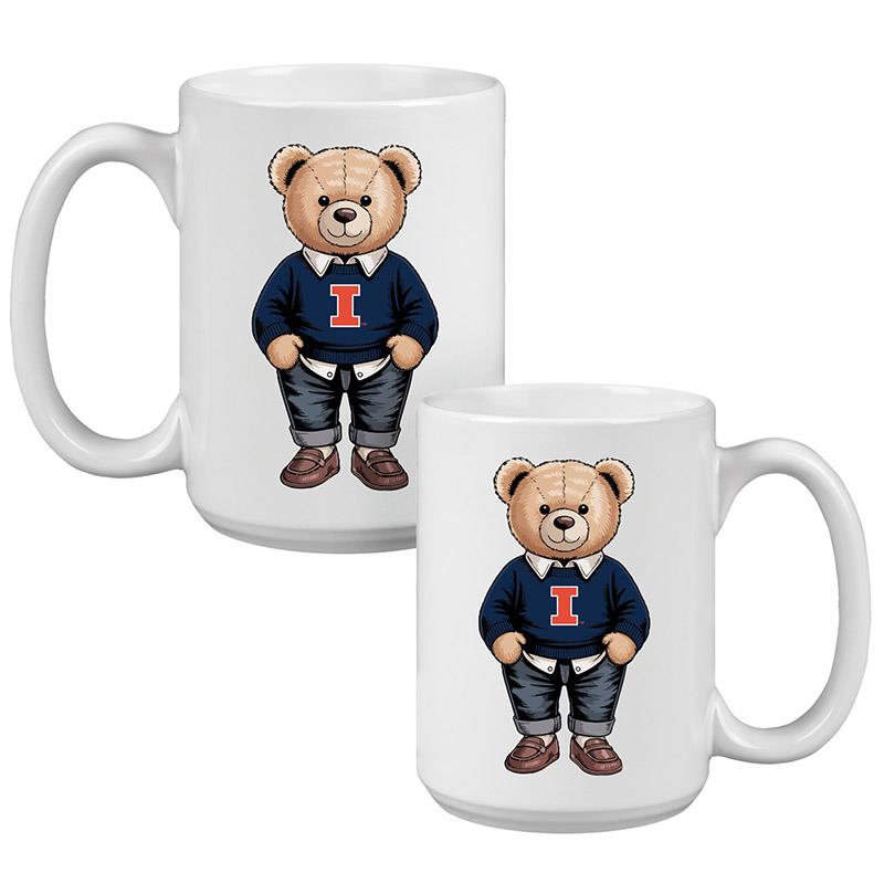 Neil Enterprises® Teddy Bear Illinois Grande Mug. 15oz. Mug features adorable teddy bear dressed in Illinois apparel.