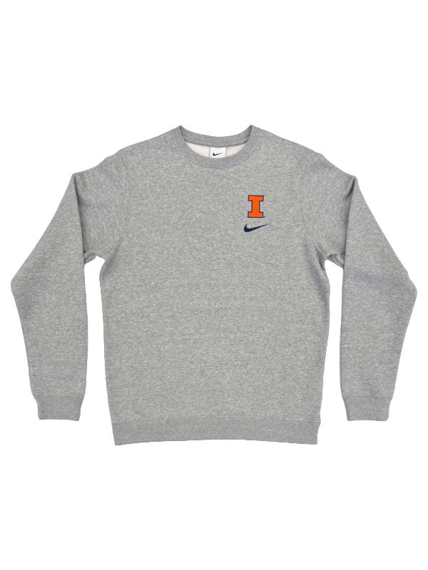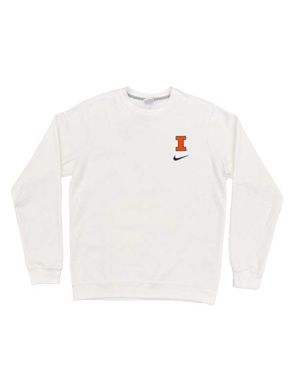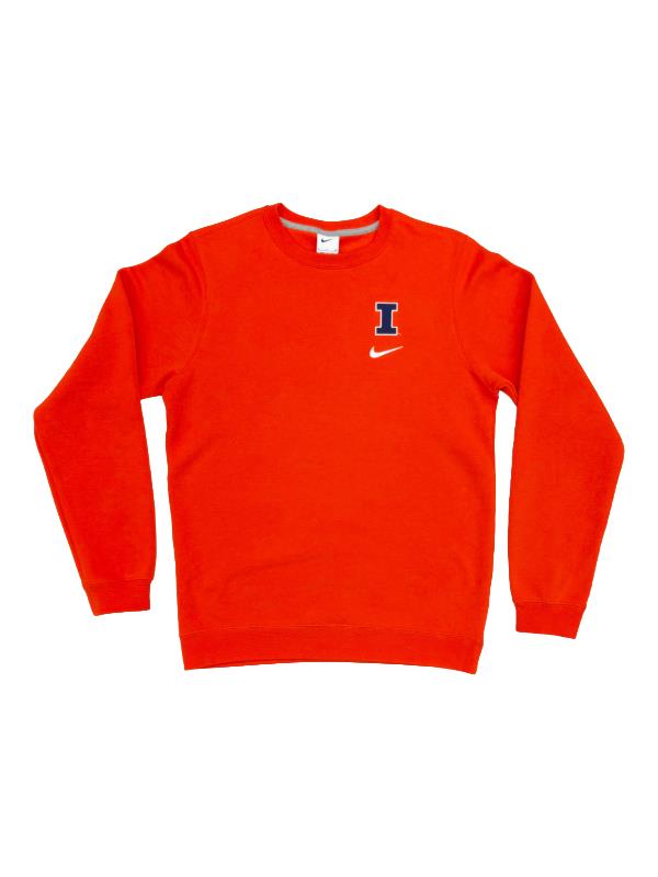Nike® 80% cotton/20% polyester Illinois sweatshirt with a Block I and Nike® swoosh embroidered on the left chest. The Illinois Embroidered Block I Crewneck Sweatshirt is a stylish and comfortable way to show your school spirit! This sweatshirt features an iconic Illinois "Block I" over a Nike swoosh logo. The cotton/polyester blend creates a cozy and warm feel, making it perfect for the colder months. Whether you’re a student, alumni, or a fan, this sweatshirt is a must-have addition to your wardrobe!