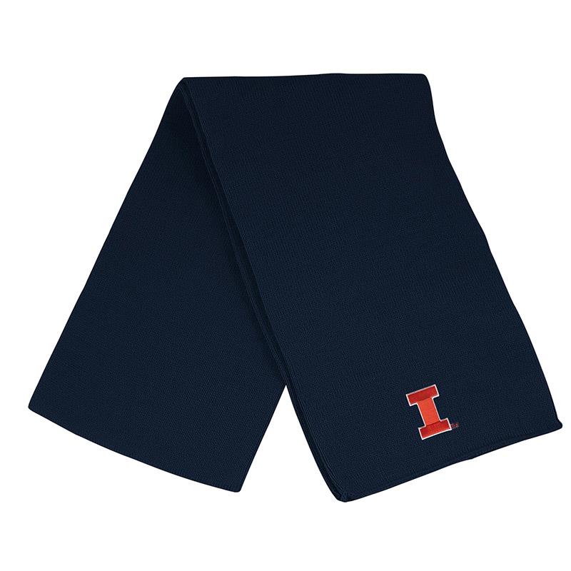 LogoFit® 60” long Illinois knit scarf with Block I patch.