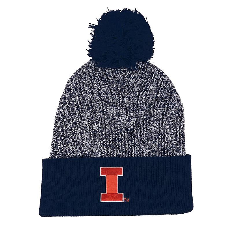 LogoFitĀ® Illinois marled hat with solid cuff and pom. Hat features Block I patch.