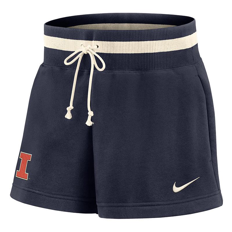 NikeĀ® 80% cotton/20% polyester Illinois Women's Phoenix shorts. Shorts are loose fit, with high rise. Feature elastic band waist with drawstring.