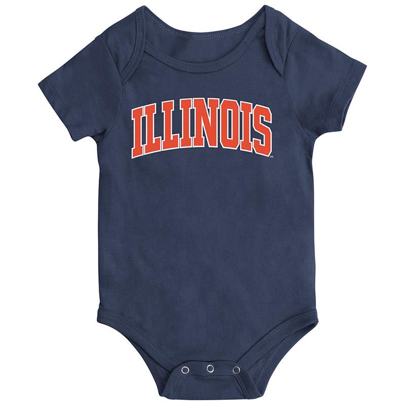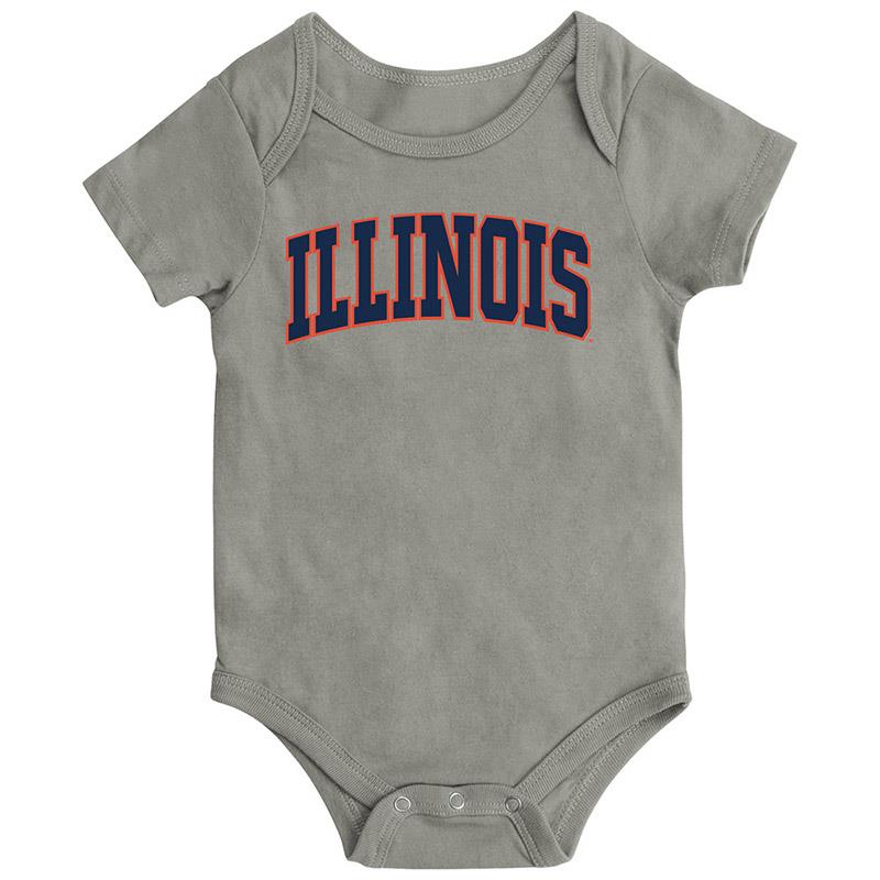 Colosseum® 52% cotton/48% polyester Illinois infant onesie. The Illinois Arch Infant Onesie is a delightful and stylish outfit for your little one, perfect for showcasing their school spirit! Made from soft, breathable fabric, this onesie features the iconic Illinois Arch design, making it both comfortable and adorable. With its easy snap closures for quick changes and a snug fit, it’s ideal for both playtime and naptime. Whether you're cheering on the team or just enjoying a day out, this onesie is a must-have for any young Illinois fan! Dress your baby in comfort and pride—it's a great way to celebrate your love for the University of Illinois!