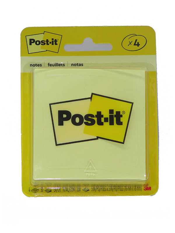 3M® yellow 3"x3" Post-it® notes. Pack of 4, 50 sheets each.
